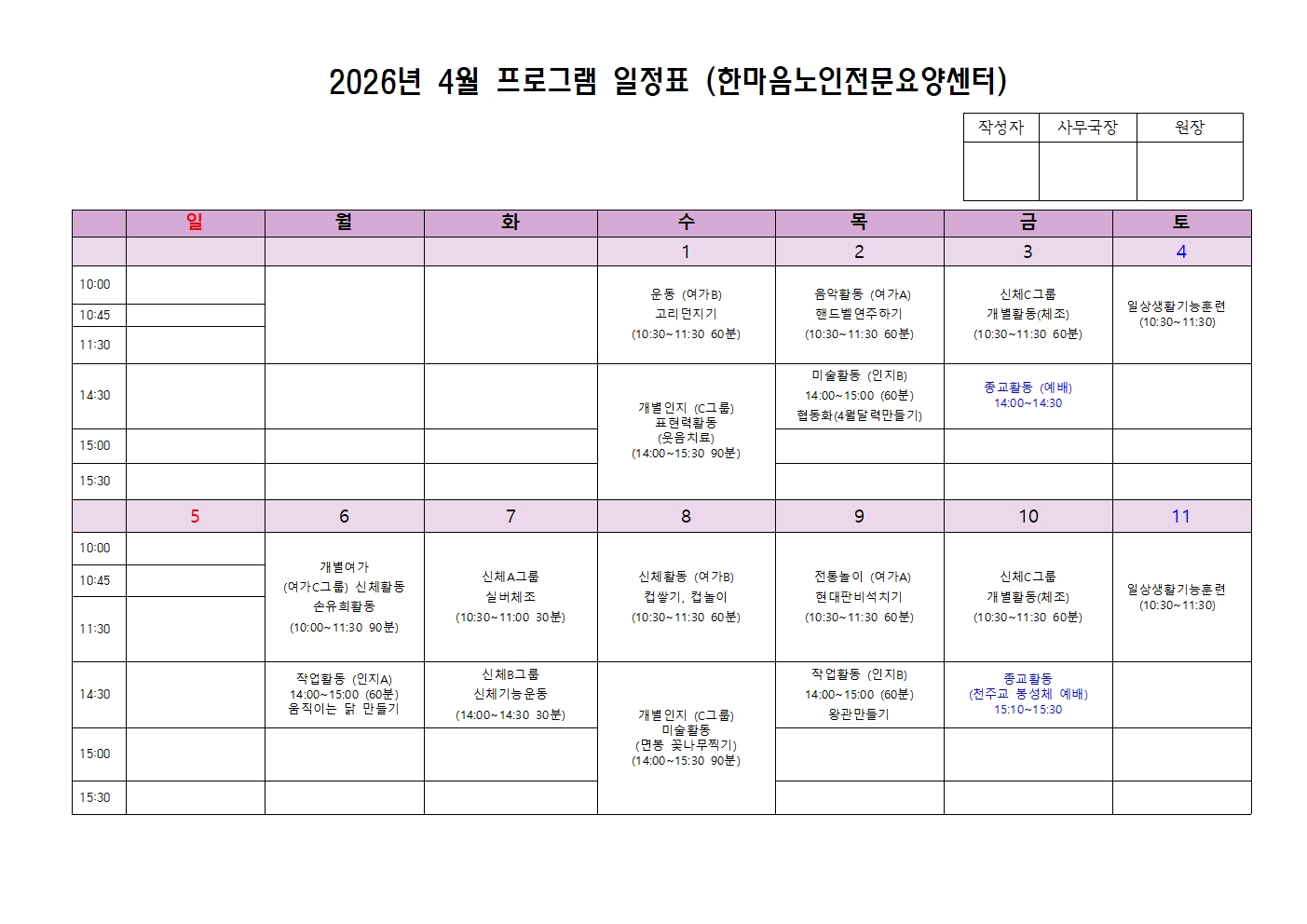 2026년 4월 프로그램 일정표
