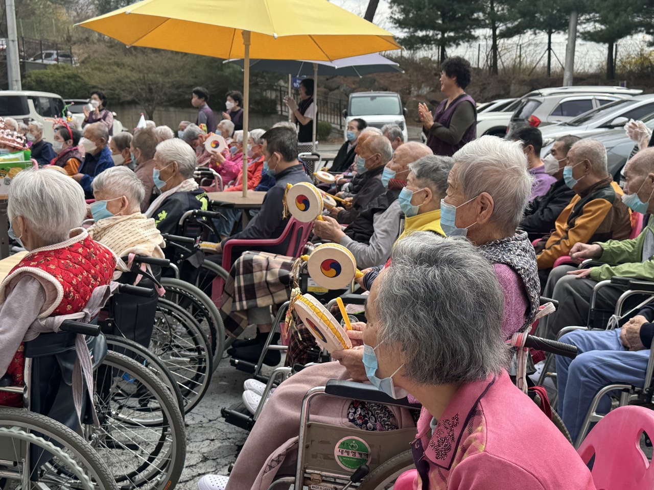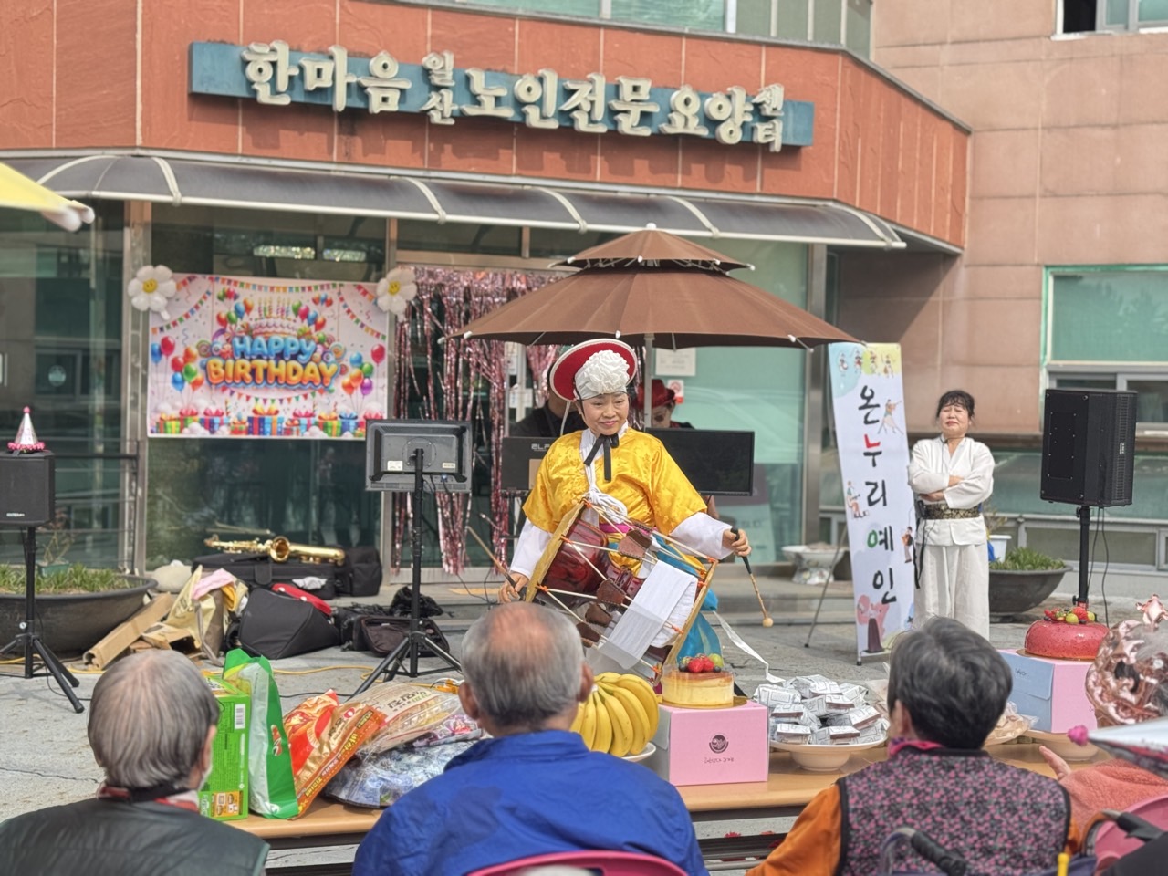 이번 3월에는 생신자 어르신들도 많으시고 특별히 자원봉사팀들이 오셔셔 축하공연해주시고 능력있는 복지쌤이 공연에 같이 합류하여 멋진 사물놀이 공연도 해주셨어요.