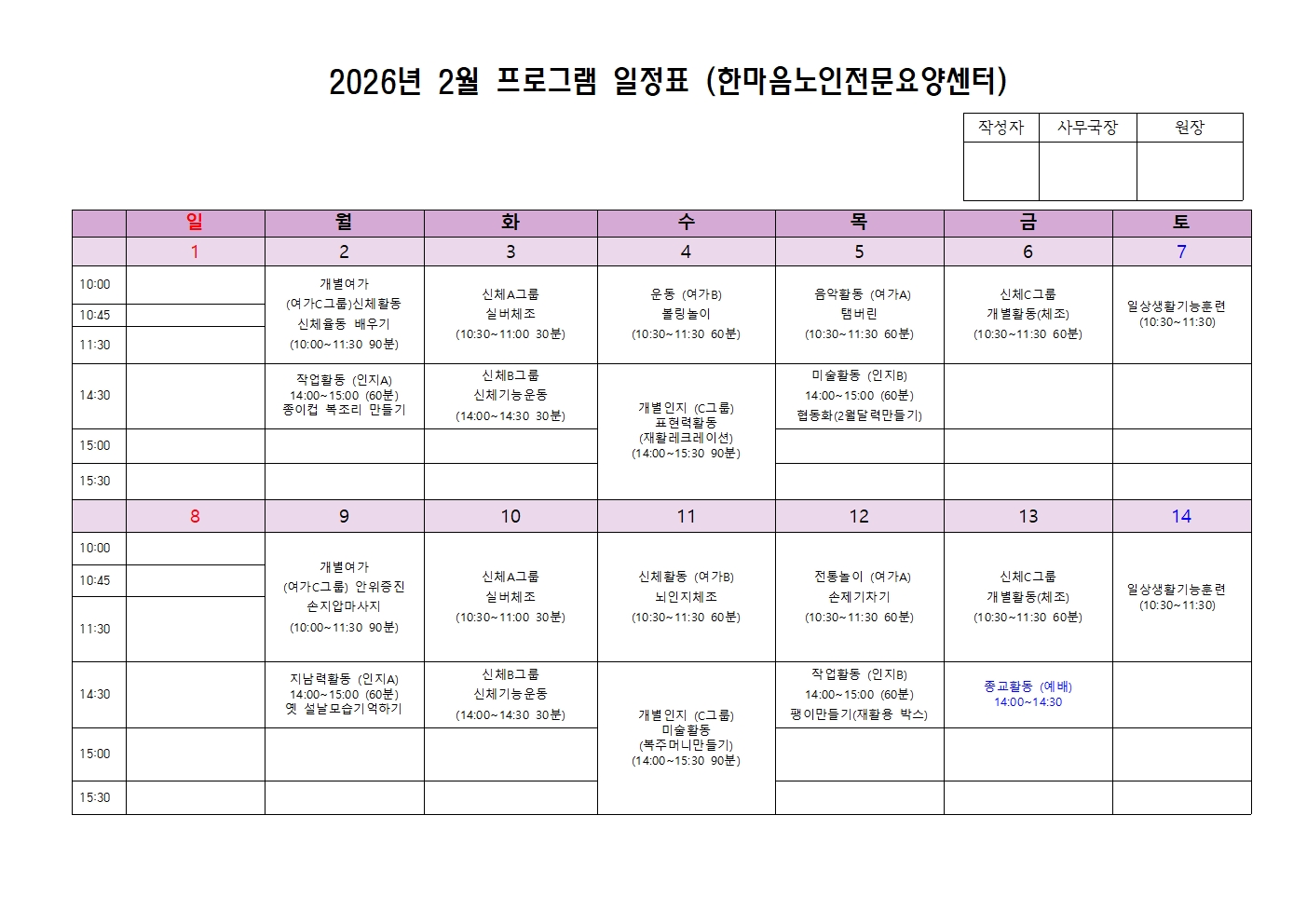 2026년 2월 프로그램 일정표