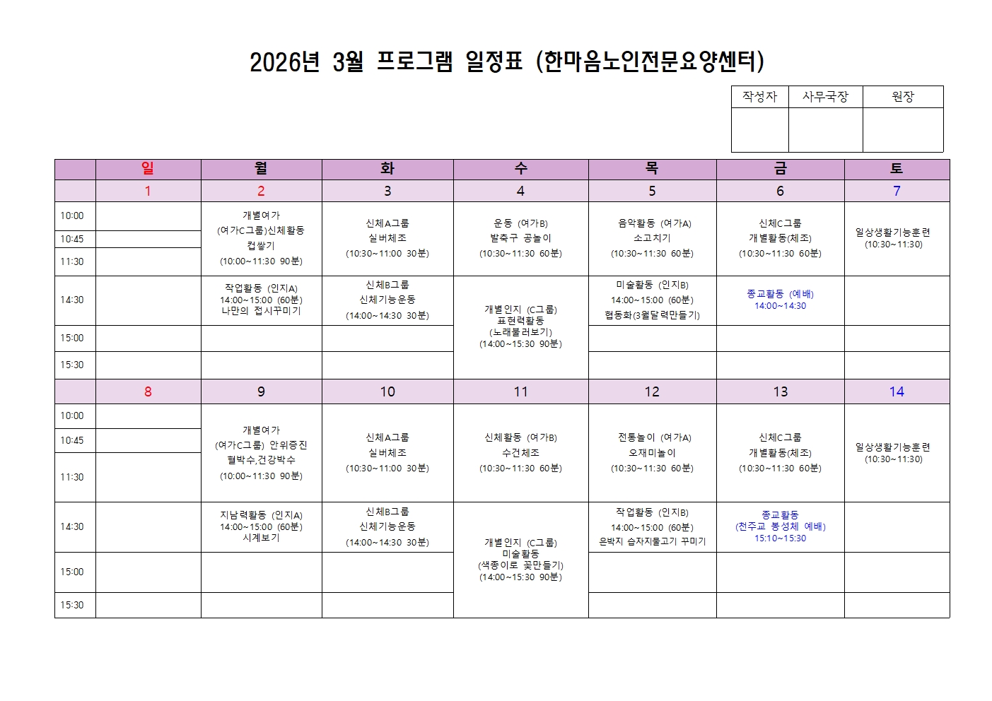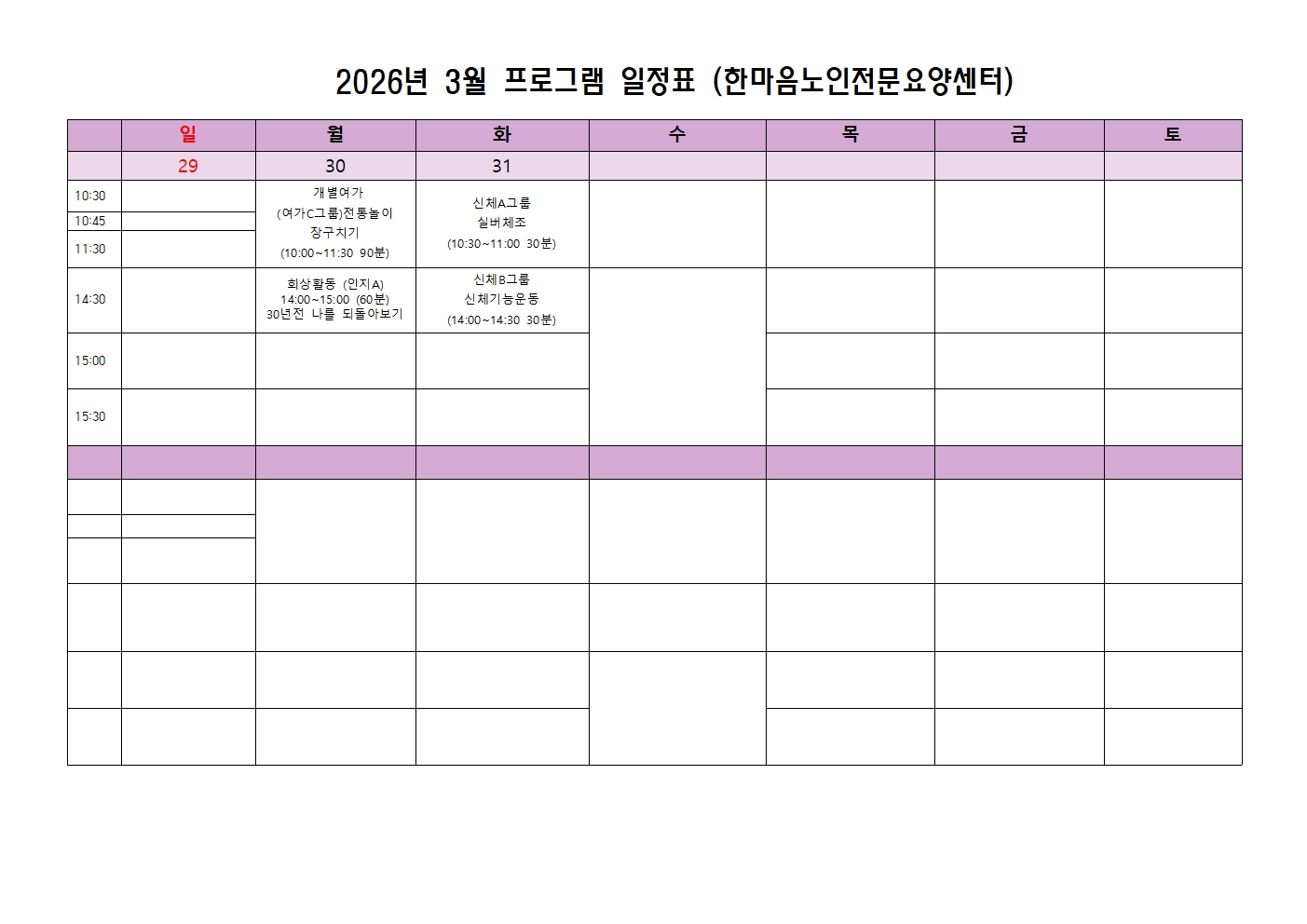 2026년 3월 프로그램 일정표