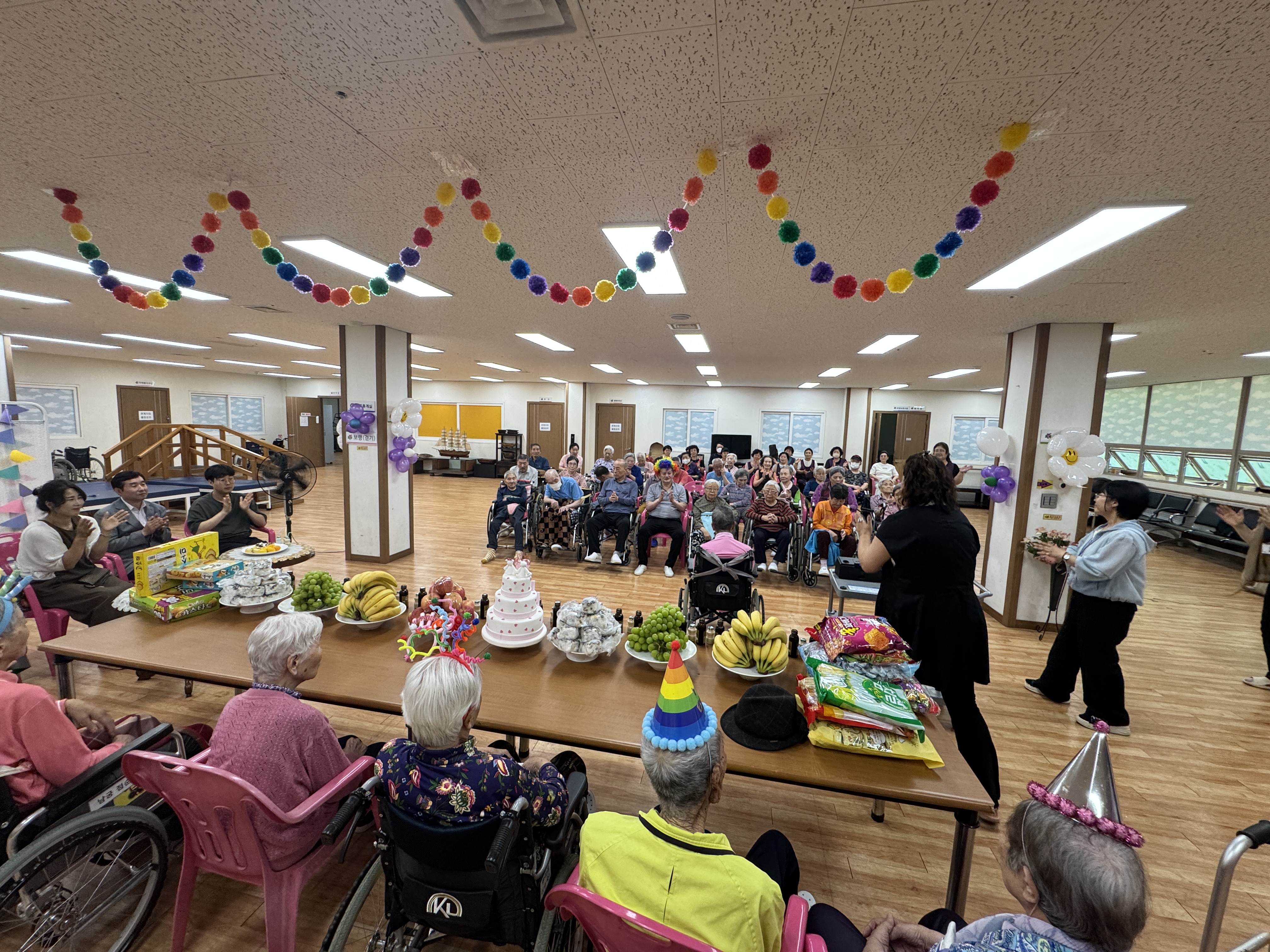 9월 어르신 생신잔치를 함께모여 축하하고 가족참여로 더욱더 풍성한 생신잔치를 보내셨습니다. 가족지지로 간식협찬도 받아 어르신들 맛있게 간식도 드시고 흥겹게 노래를 부르며 즐거운 시간을 보내셨습니다.