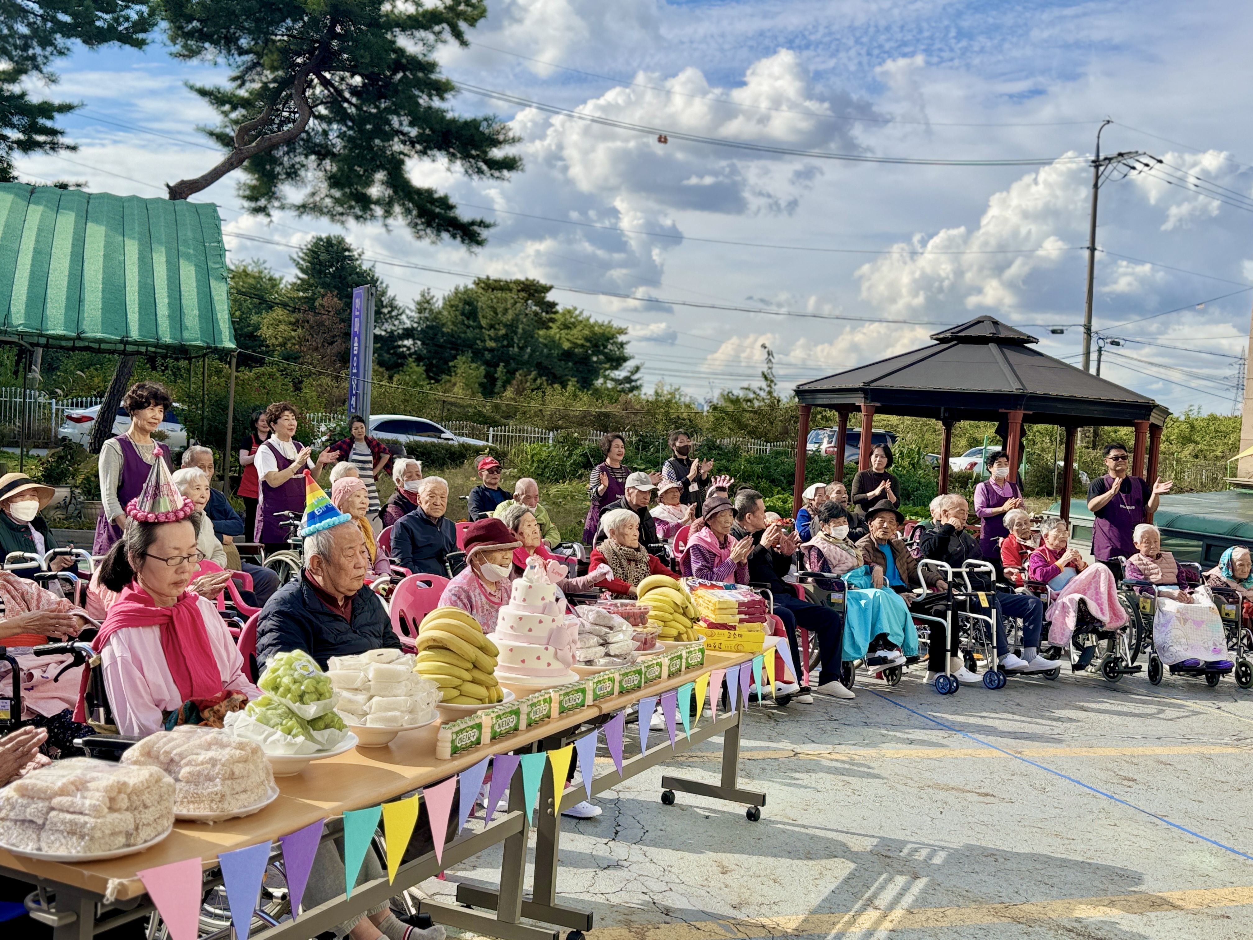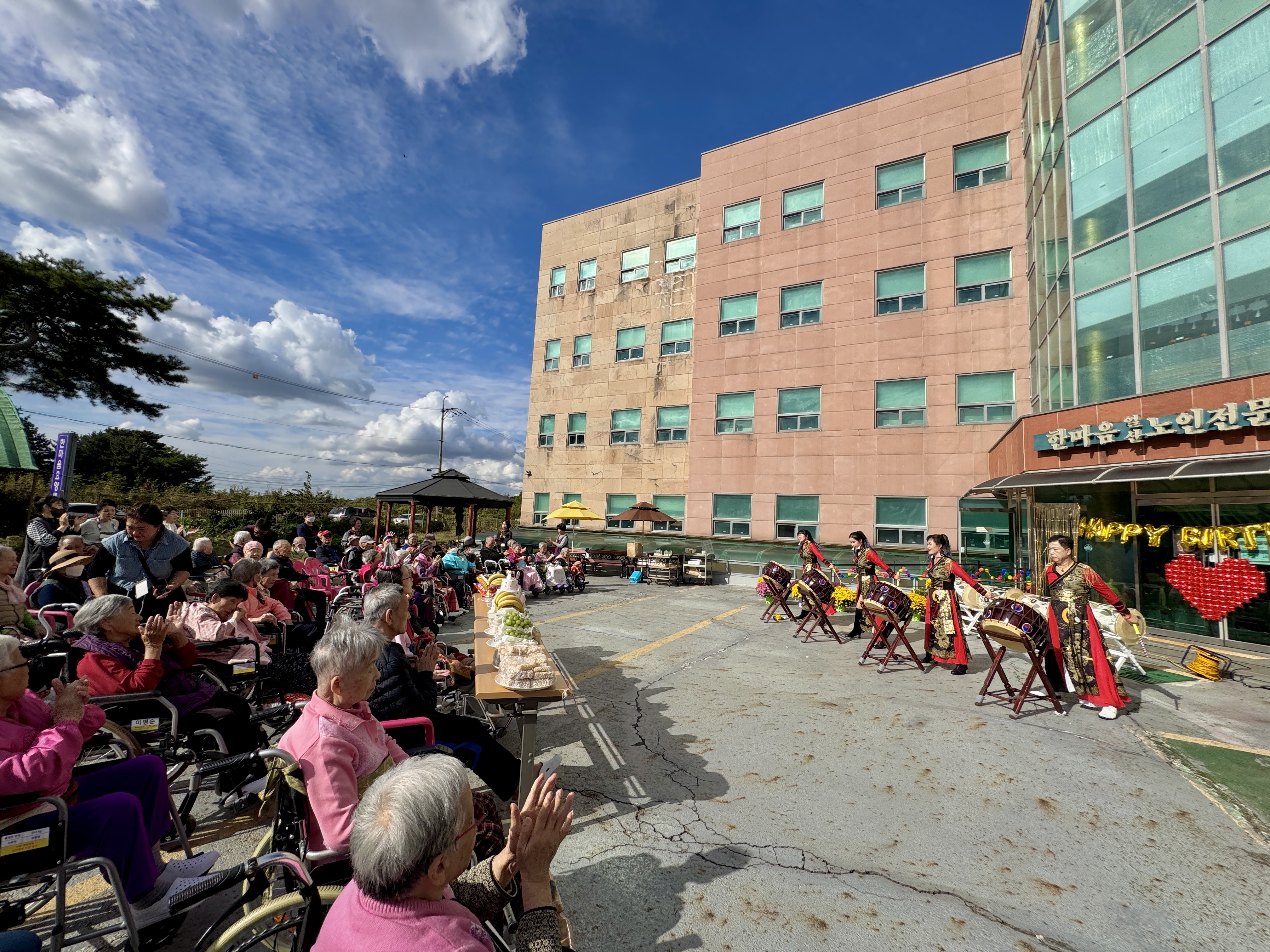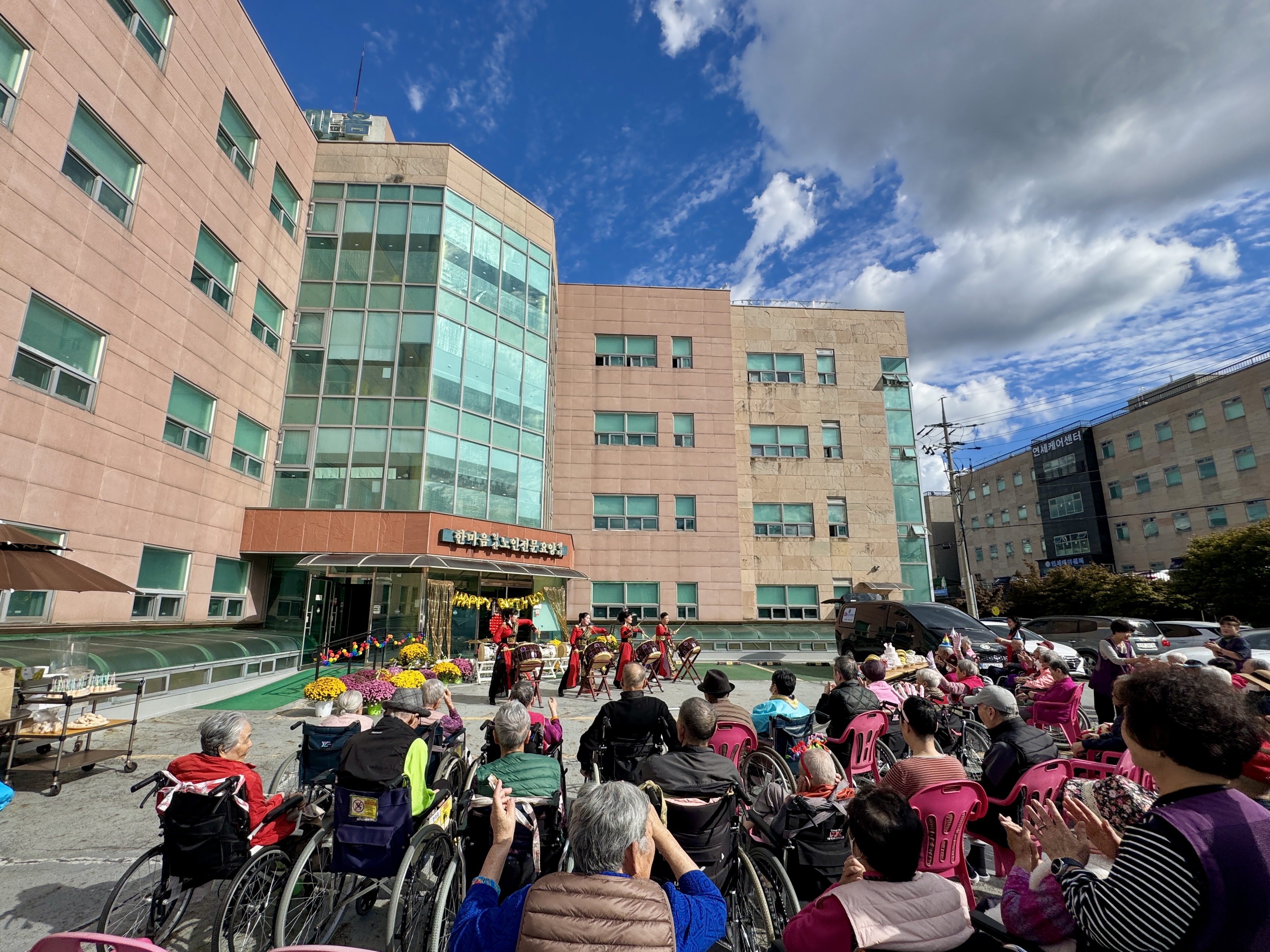 10월 생신자 어르신 생신잔치를 오늘은 특별히 MS종합예술팀들도 함께 햇살이 너무나 좋았던 야외에서 실시하였습니다.