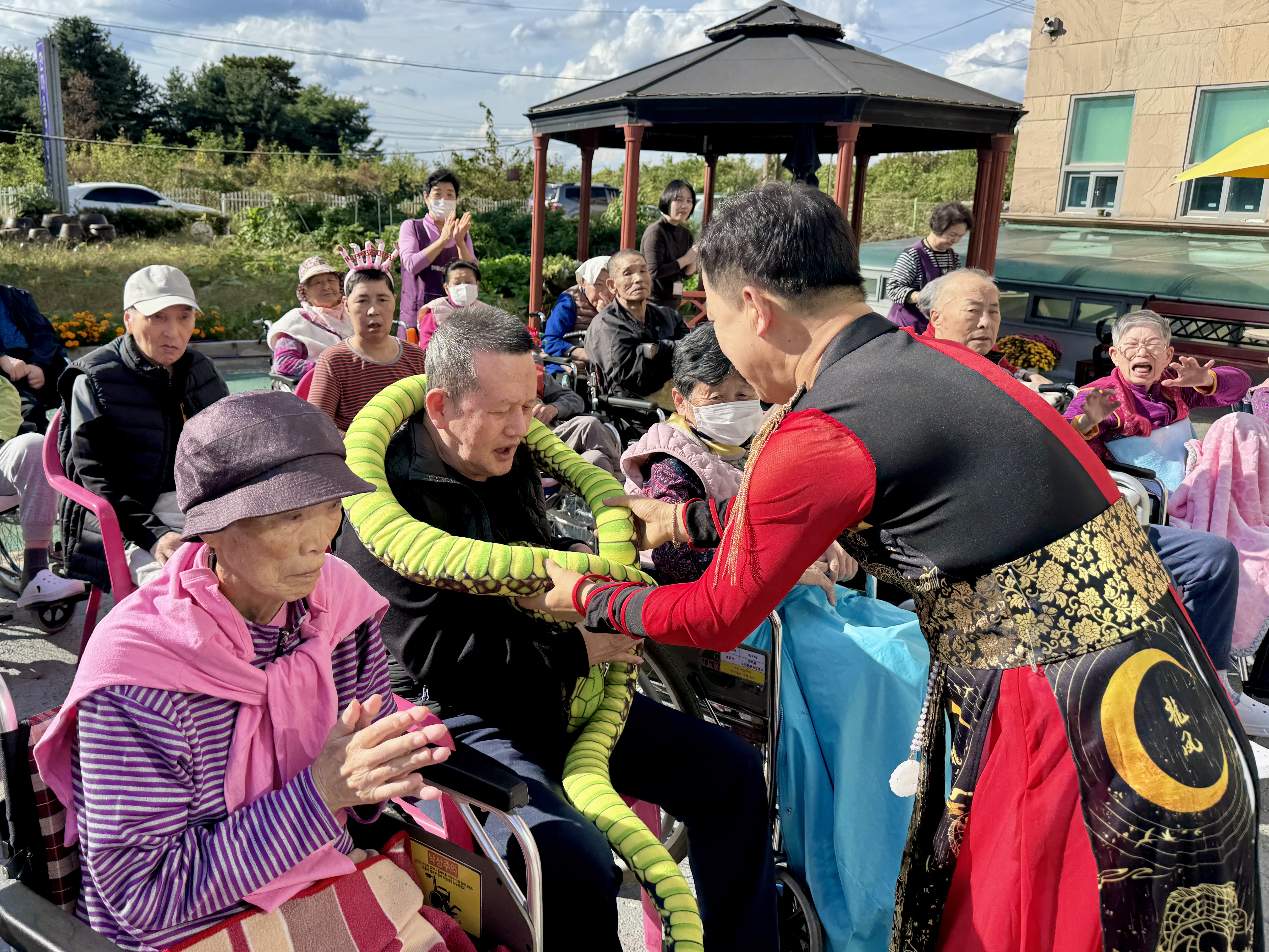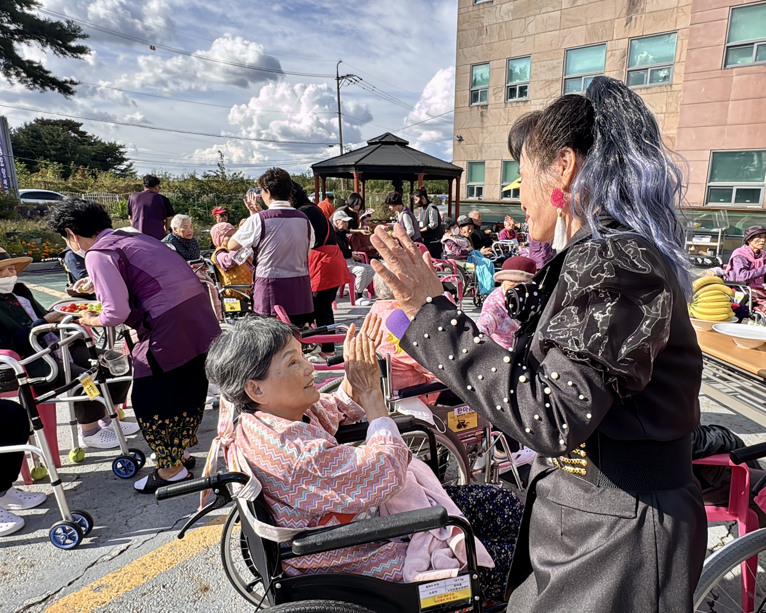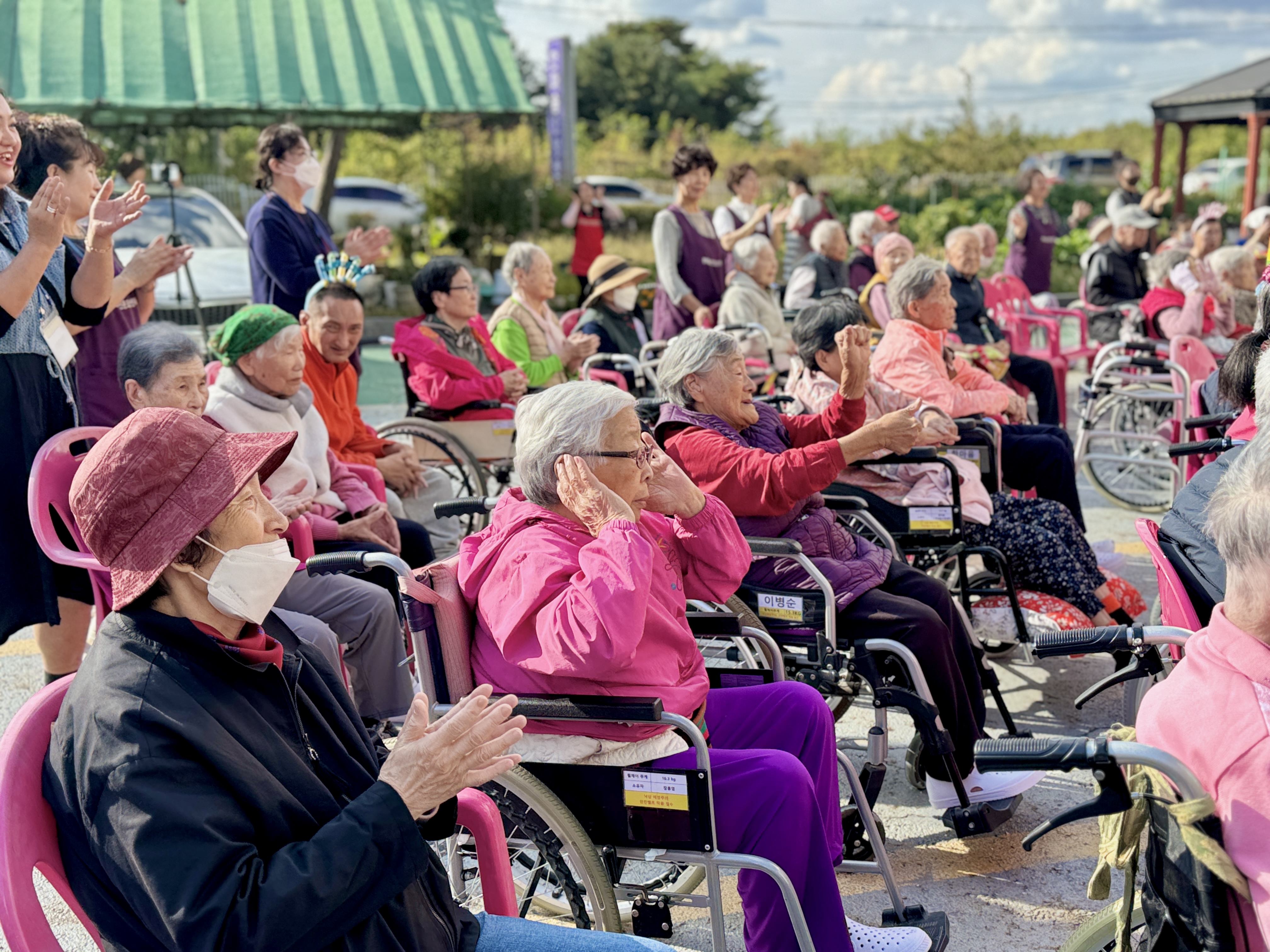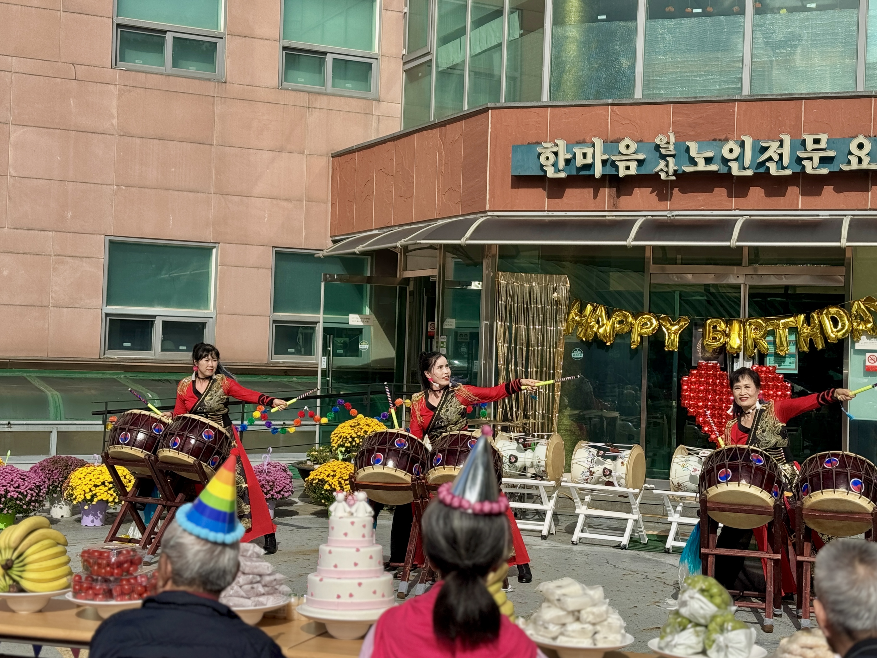 10월 생신자 어르신 생신잔치를 오늘은 특별히 MS종합예술팀들도 함께 햇살이 너무나 좋았던 야외에서 실시하였습니다.